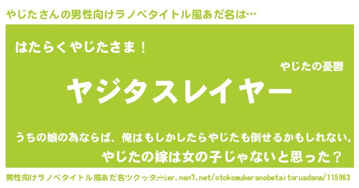 | 胡散臭い通販商品みたいなあだ名 | 『信頼と実績のネックレス…その名も「やじた」』 |