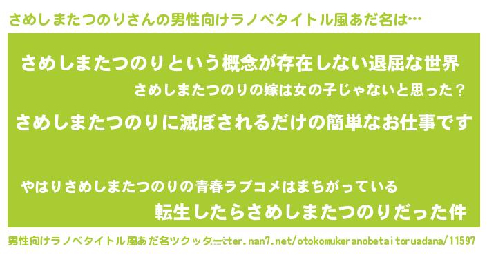 | 意味不明あだ名 | 『永久保存さめしまたつのり』 |