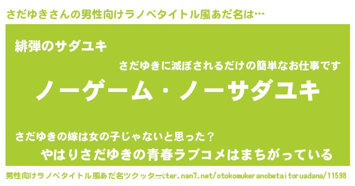 | 伝説のあだ名 | 『救世主となる錬金術士さだゆき』 |