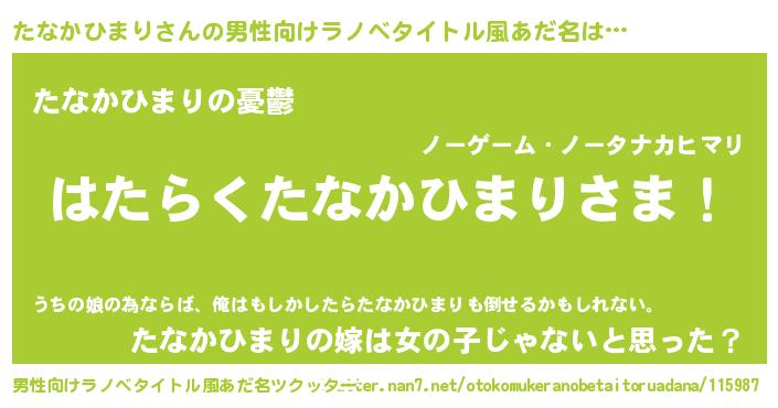 | ヒーロー風カッコイイあだ名 | 『スーパータナカヒマリ』『黄金騎士タナ』 |