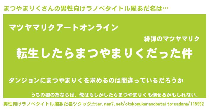 | 女子向けラノベタイトル風あだ名 | 『まつやまりくの玉の輿計画!』 |