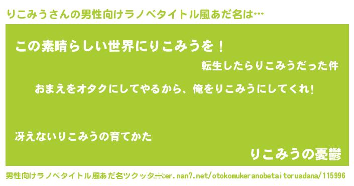 | 女子向けラノベタイトル風あだ名 | 『りこみう夫妻のなれそめ』 |