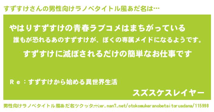 | 意味不明あだ名 | 『すずすけフォーエバー』『自称すずすけ』 |