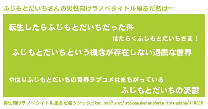 | ヘコむあだ名 | 『ふじもとだいち(小並感)』『ふじにー』 |