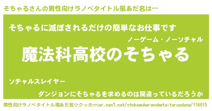 | 女子向けラノベタイトル風あだ名 | 『そちゃるなんてお断りですっ。』 |