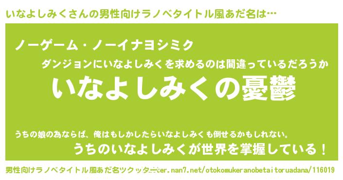 | 女子向けラノベタイトル風あだ名 | 『いなよしみく姫と円卓の騎士』 |