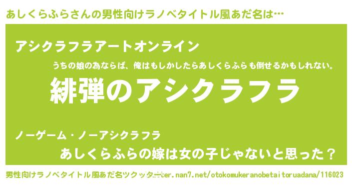 | 胡散臭い通販商品みたいなあだ名 | 『必ず成功するブレスレット…その名も「あしくらふら」』 |