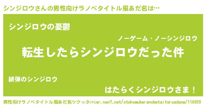 | 女子向けラノベタイトル風あだ名 | 『シンジロウの玉の輿計画!』 |
