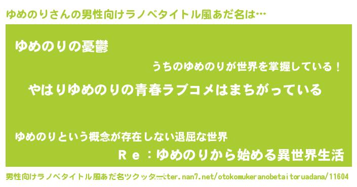 | 女子向けラノベタイトル風あだ名 | 『ゆめのりの雑貨屋さん』 |