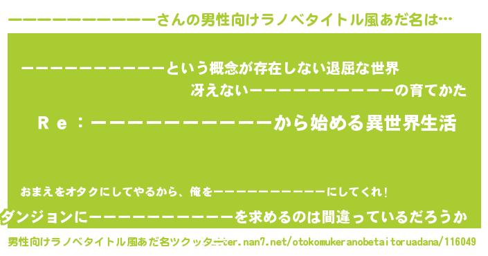 | 女子向けラノベタイトル風あだ名 | 『闇のーーーーーーーーーー』 |