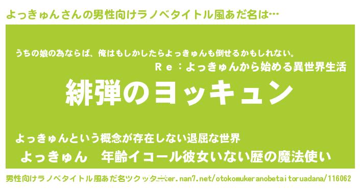 | ヒーロー風カッコイイあだ名 | 『ウルトラよっきゅんマン』 |