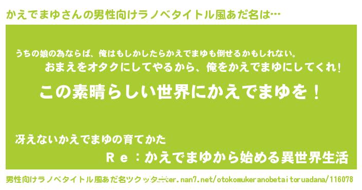 | 意味不明あだ名 | 『住所不定無職かえでまゆ(98歳)』 |