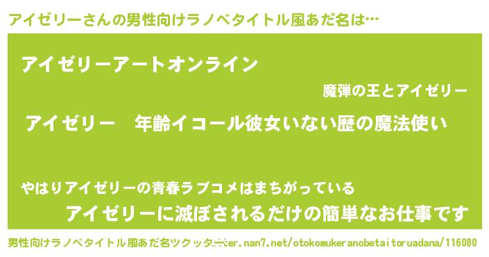 | 胡散臭い通販商品みたいなあだ名 | 『億万長者になれるブレスレット…その名も「アイゼリー」』 |