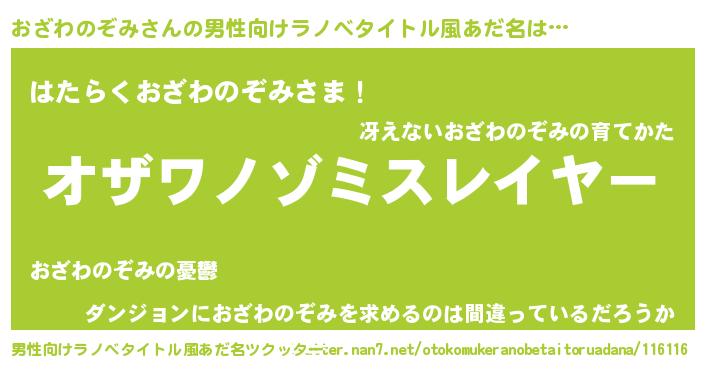 | 肩書あだ名 | 『おざわのぞみ中佐』『おざわのぞみ塾長』 |