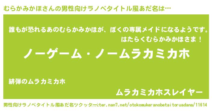 | ヒーロー風カッコイイあだ名 | 『慈愛の使者むらかみかほ』 |
