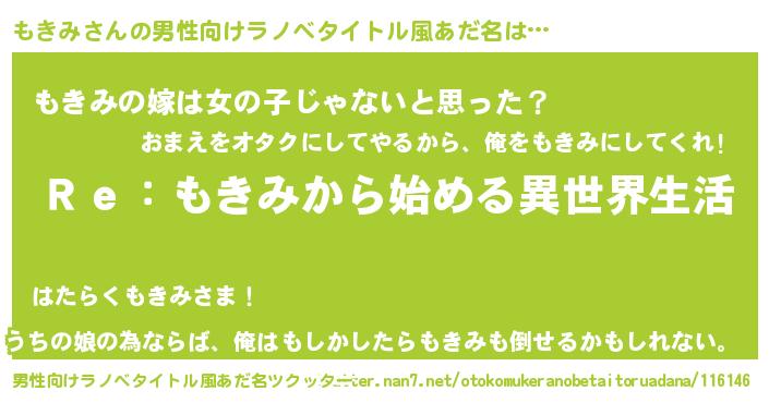 | 胡散臭い通販商品みたいなあだ名 | 『芸能人もオススメする高麗人参…その名も「もきみ」』 |