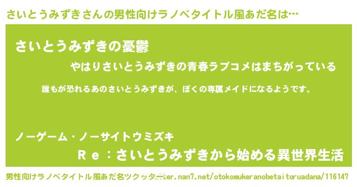 | ヘコむあだ名 | 『さいとうみずき(遠い目)』『さいにー』 |
