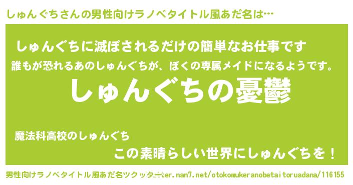 | 女子向けラノベタイトル風あだ名 | 『(仮)しゅんぐちのやんごとなき事情』 |