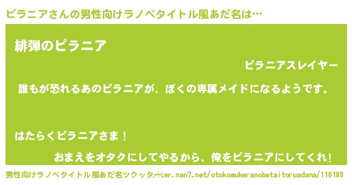 | ヘコむあだ名 | 『ピラニア(笑)』『ピラもー』 |