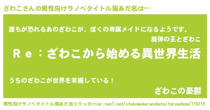 | 意味不明あだ名 | 『自称ざわこ』『永久保存ざわこ』 |