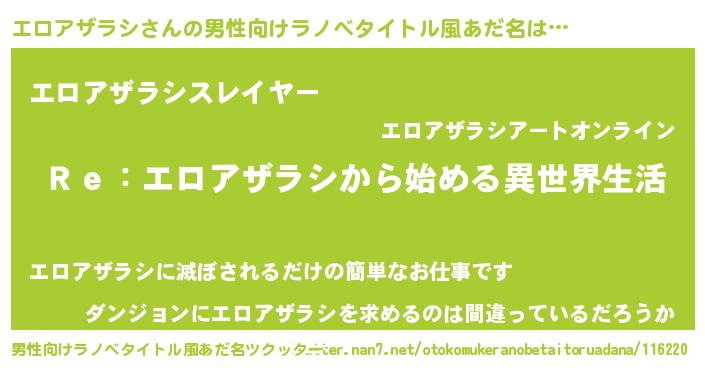 | 女子向けラノベタイトル風あだ名 | 『エロアザラシストレイドッグス』 |