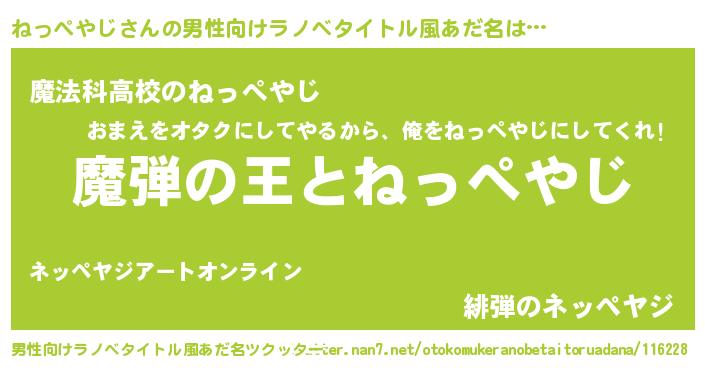 | ヒーロー風カッコイイあだ名 | 『仮面ネッダー』『超時空戦士ネッペヤジ』 |