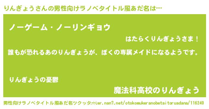 | 胡散臭い通販商品みたいなあだ名 | 『来世でも幸せになれる健康食品…その名も「りんぎょう」』 |