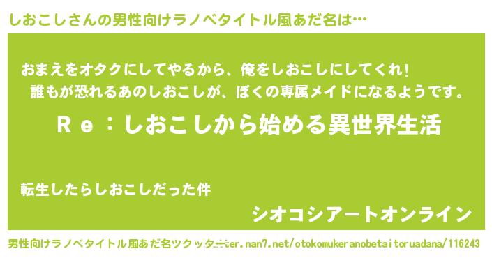| 女子向けラノベタイトル風あだ名 | 『闇のしおこし』 |