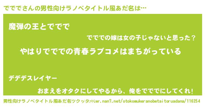 | 女子向けラノベタイトル風あだ名 | 『でででの雑貨屋さん』 |