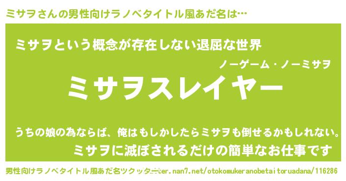 | 胡散臭い通販商品みたいなあだ名 | 『絶対に幸福をもたらす水素水…その名も「ミサヲ」』 |