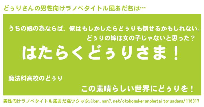 | 意味不明あだ名 | 『どぅりフォーエバー』『自称どぅり』 |