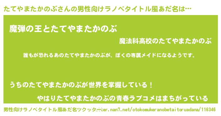 | 胡散臭い通販商品みたいなあだ名 | 『来世でも幸せになれる招き猫…その名も「たてやまたかのぶ」』 |