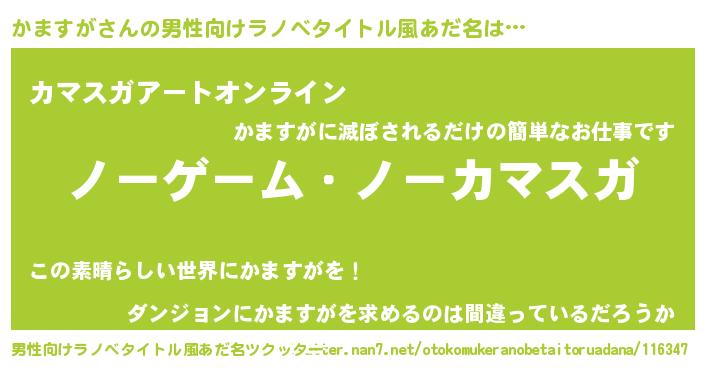 | 女子向けラノベタイトル風あだ名 | 『死神かますがの再婚』 |