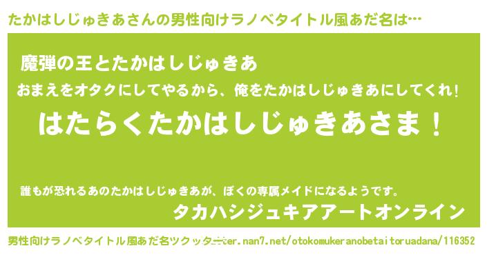 たかはしじゅきあさんの男性向けラノベタイトル風あだ名をツクッター!