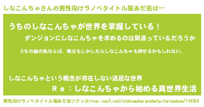| 女子向けラノベタイトル風あだ名 | 『しなこんちゃ伯爵の花嫁』 |