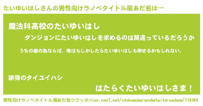 | 女子向けラノベタイトル風あだ名 | 『たいゆいはしの婚約者』 |