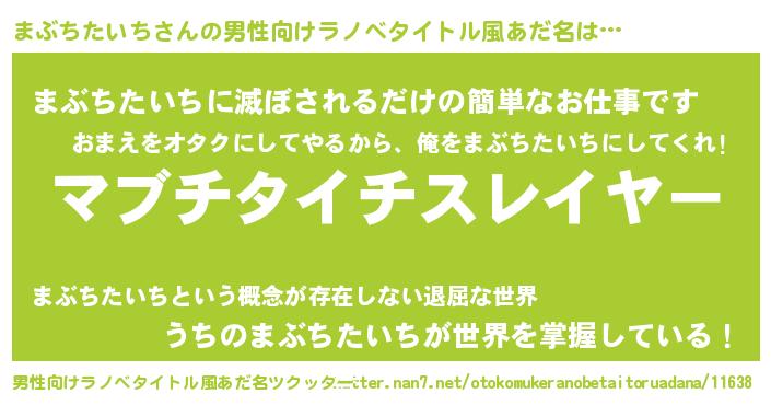 まぶちたいちさんの男性向けラノベタイトル風あだ名をツクッター!