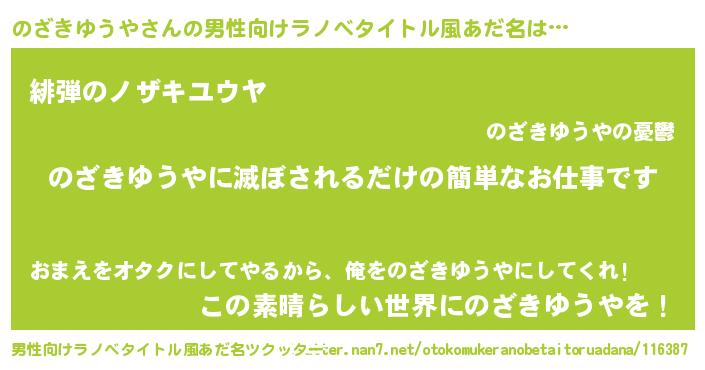 | ヒーロー風カッコイイあだ名 | 『仮面ノザダー』『スーパーノザキユウヤ』 |