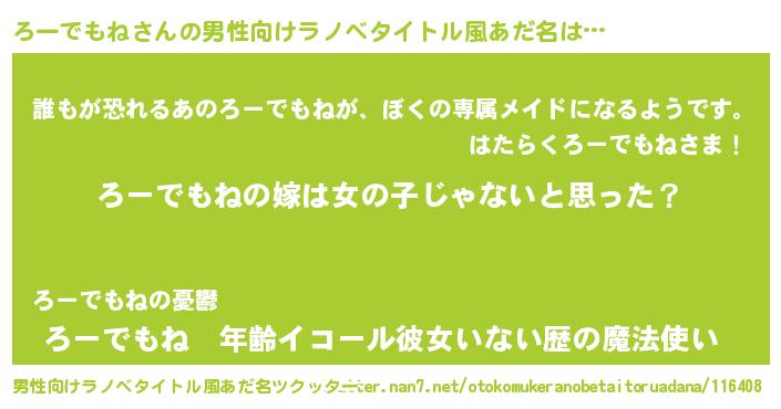 | 女子向けラノベタイトル風あだ名 | 『ろーでもね様がみてる』 |