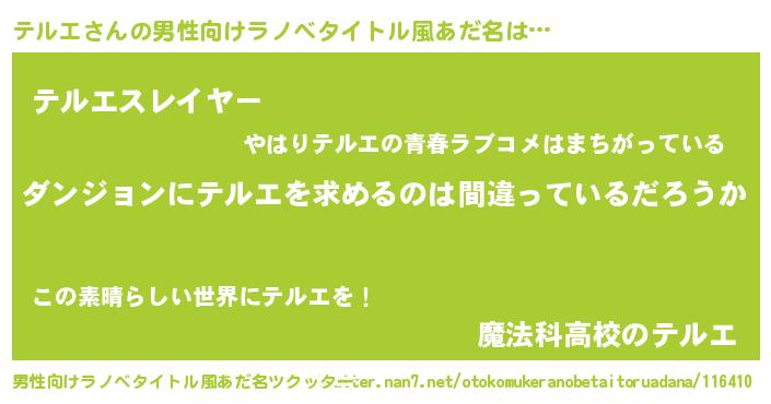 | 意味不明あだ名 | 『とにかく怪しいテルエ』『自称テルエ』 |