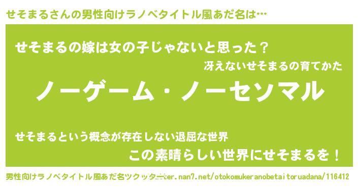 | 女子向けラノベタイトル風あだ名 | 『死神せそまるの再婚』 |