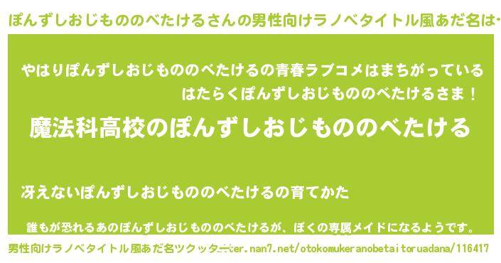 | 女子向けラノベタイトル風あだ名 | 『ぽんずしおじもののべたけるアンティーク』 |