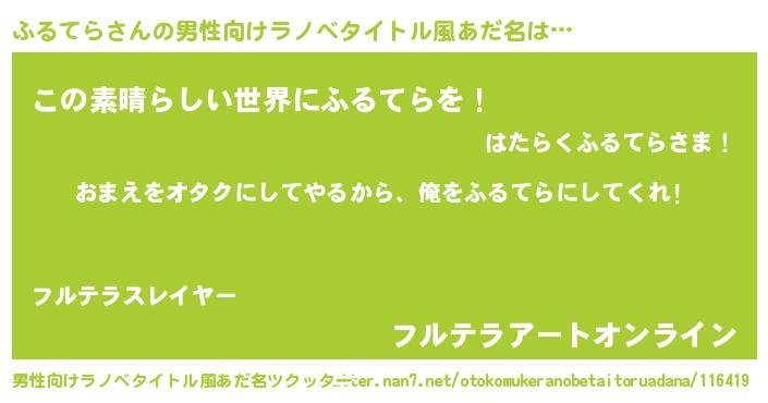 | 女子向けラノベタイトル風あだ名 | 『ふるてら夫妻のなれそめ』 |