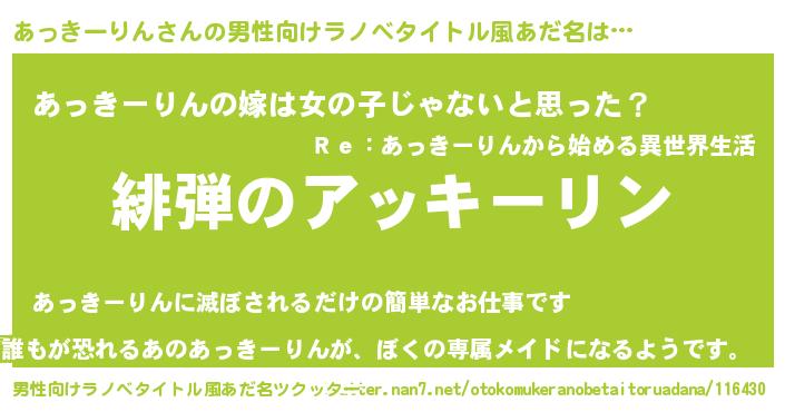 | 女子向けラノベタイトル風あだ名 | 『シンデレラあっきーりん家の靴箱館』 |
