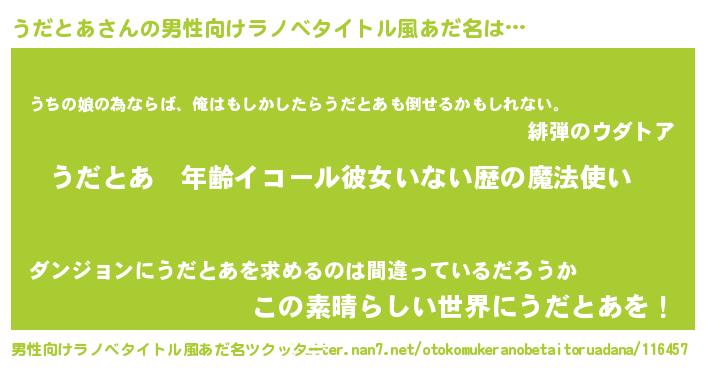 | 胡散臭い通販商品みたいなあだ名 | 『運命の人と巡り会える高級そうな壺…その名も「うだとあ」』 |