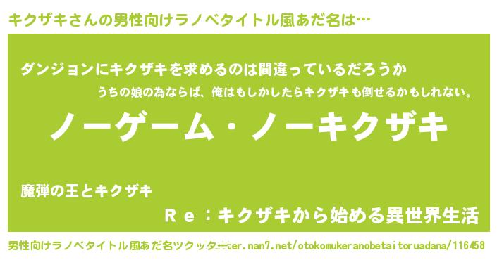 | 女子向けラノベタイトル風あだ名 | 『キクザキ恋絵巻』『キクザキの婚約者』 |