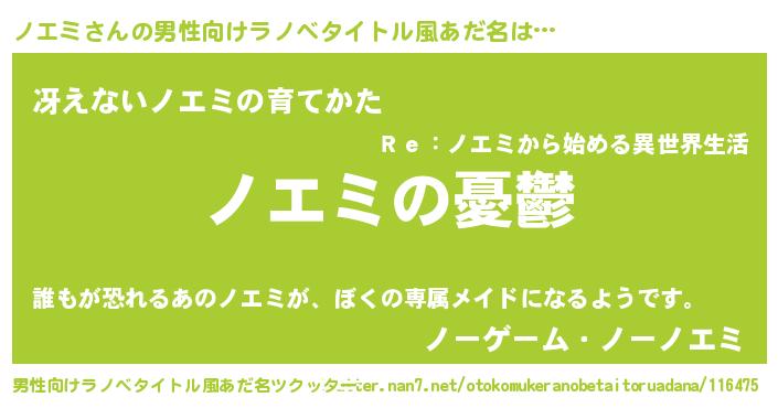 | 女子向けラノベタイトル風あだ名 | 『(仮)ノエミのやんごとなき事情』 |