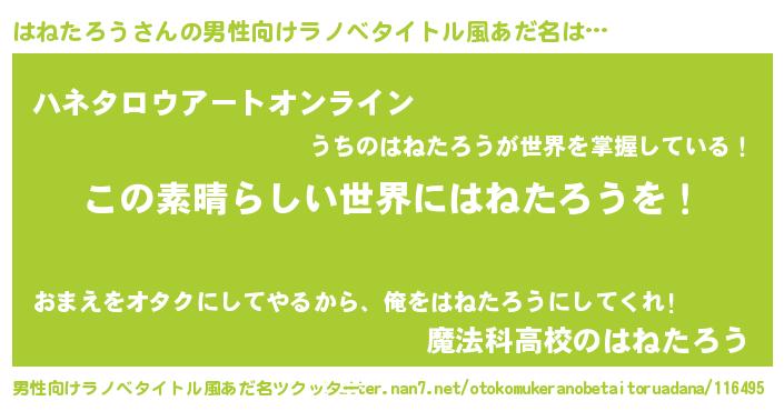 | 意味不明あだ名 | 『住所不定無職はねたろう(10歳)』 |
