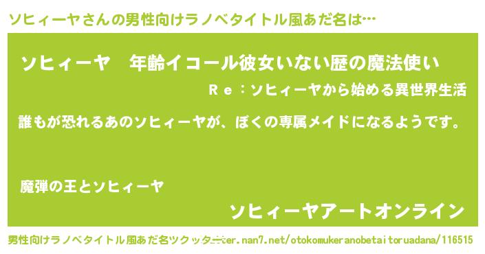 | 胡散臭い通販商品みたいなあだ名 | 『来世でも幸せになれる水素水…その名も「ソヒィーヤ」』 |