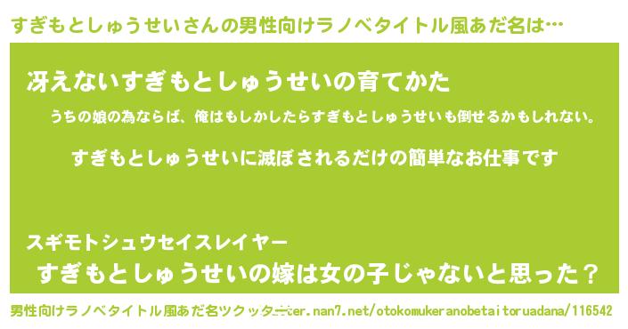 | 市区町村名 | 『名古すぎ市』『すぎ田谷区』 |